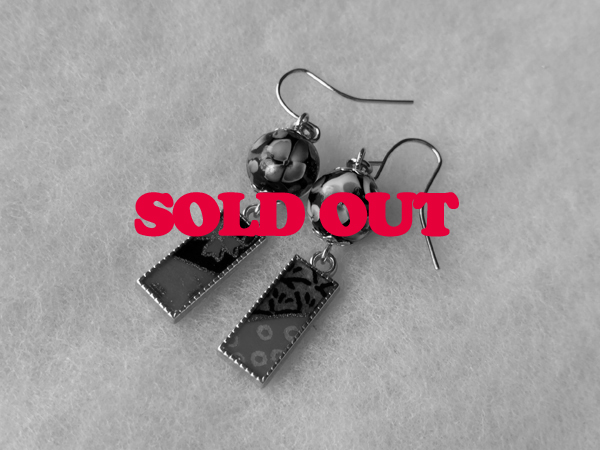 小花模様のとんぼ玉と美濃和紙ピアス 0219e