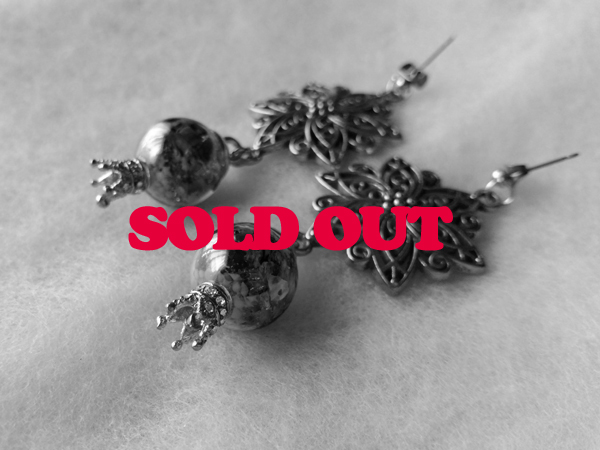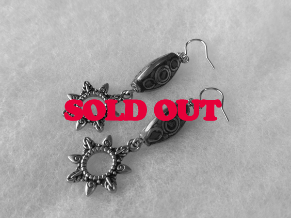 青い月と立体感のあるふくろうの金古美ピアス 0326a