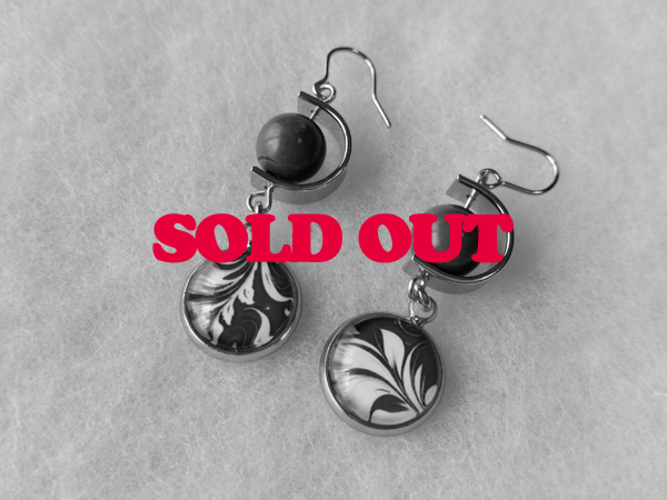 モンステラと黒×ゴールドビーズのピアス 0409c