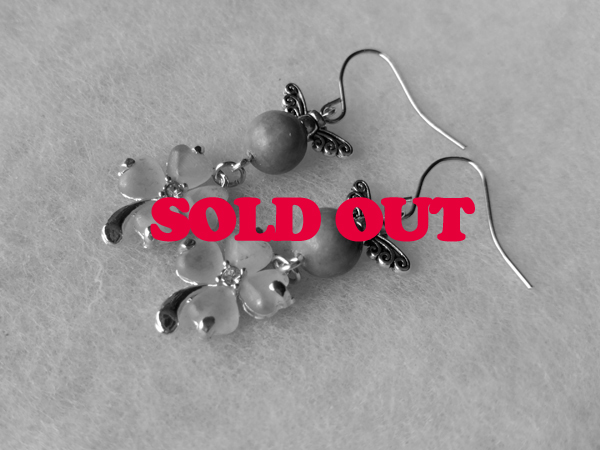 小花模様のとんぼ玉とモンステラのピアス 0430i
